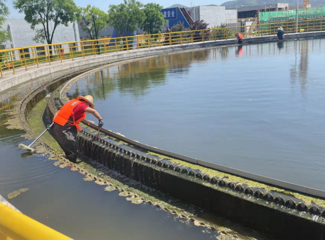 2022-05-09為全面提升城東污水處理廠出水各項(xiàng)指標(biāo),強(qiáng)化7S管理和文明創(chuàng)建要求,近日,城東污水處理公司組織職工清洗二沉池,全力保證出水穩(wěn)定達(dá)標(biāo)排放。此次二沉池清洗工作,重點(diǎn)是對(duì)二沉池池壁、出水堰槽附著的藻類進(jìn)行清理,洗刷出水三角堰蓄積污泥,打撈水面漂浮物,全面清洗